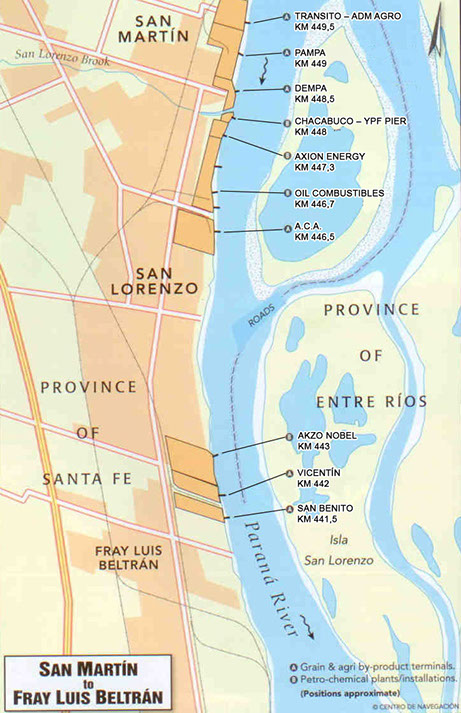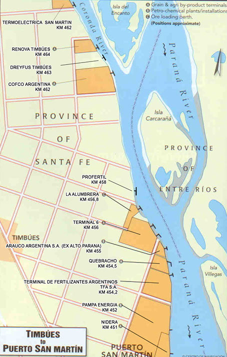 It includes the area of Timbues, Puerto General San Martín and San Lorenzo Port. It is located between Km 466 and Km 441 of the Parana river. All the terminals are on the right side of the river.
