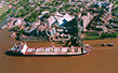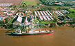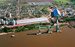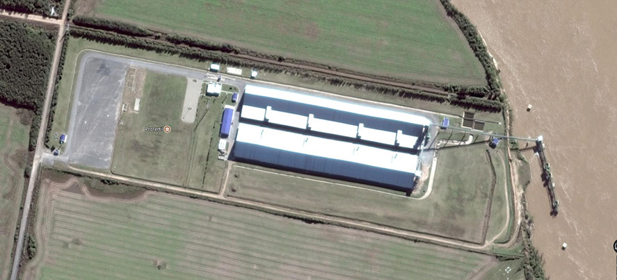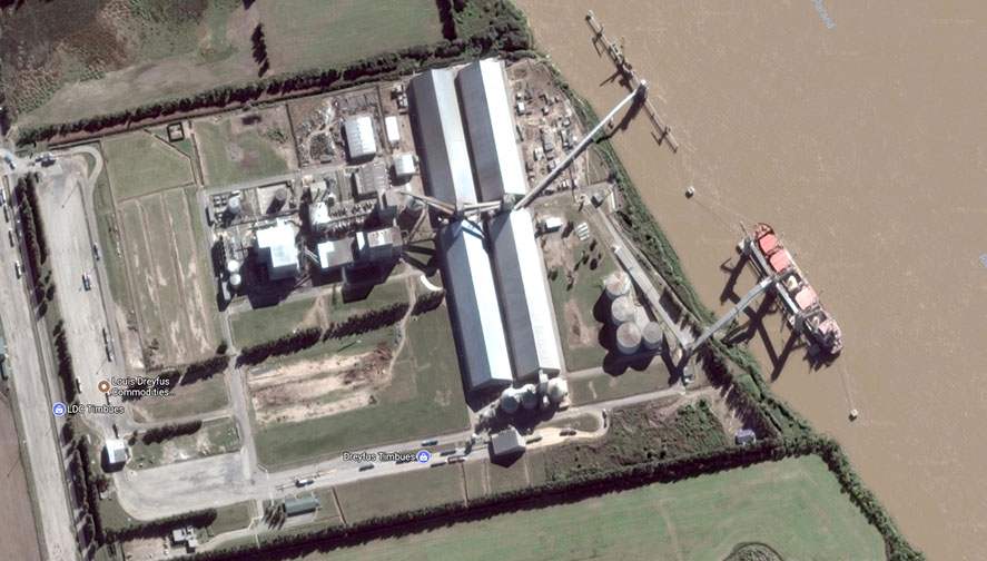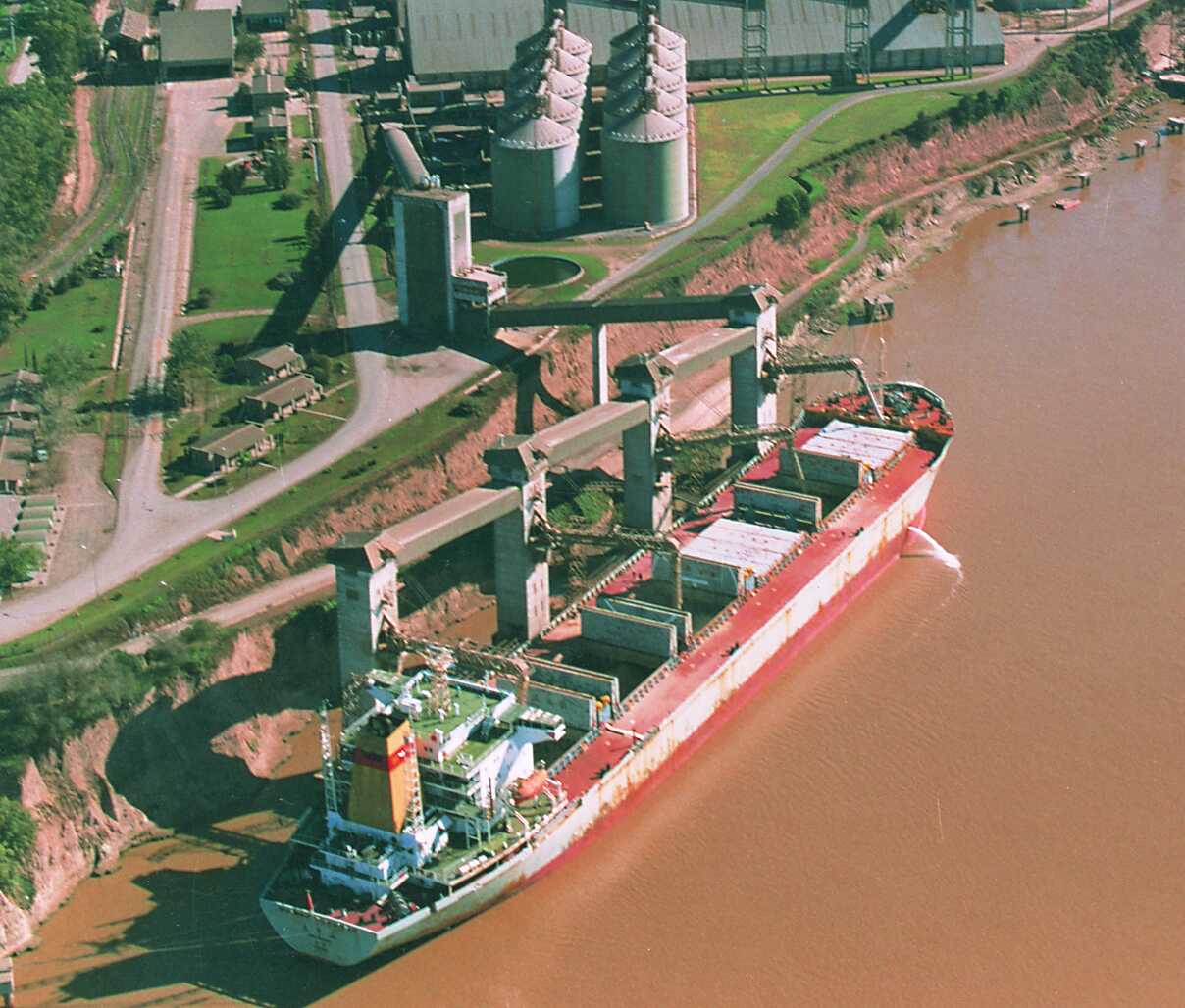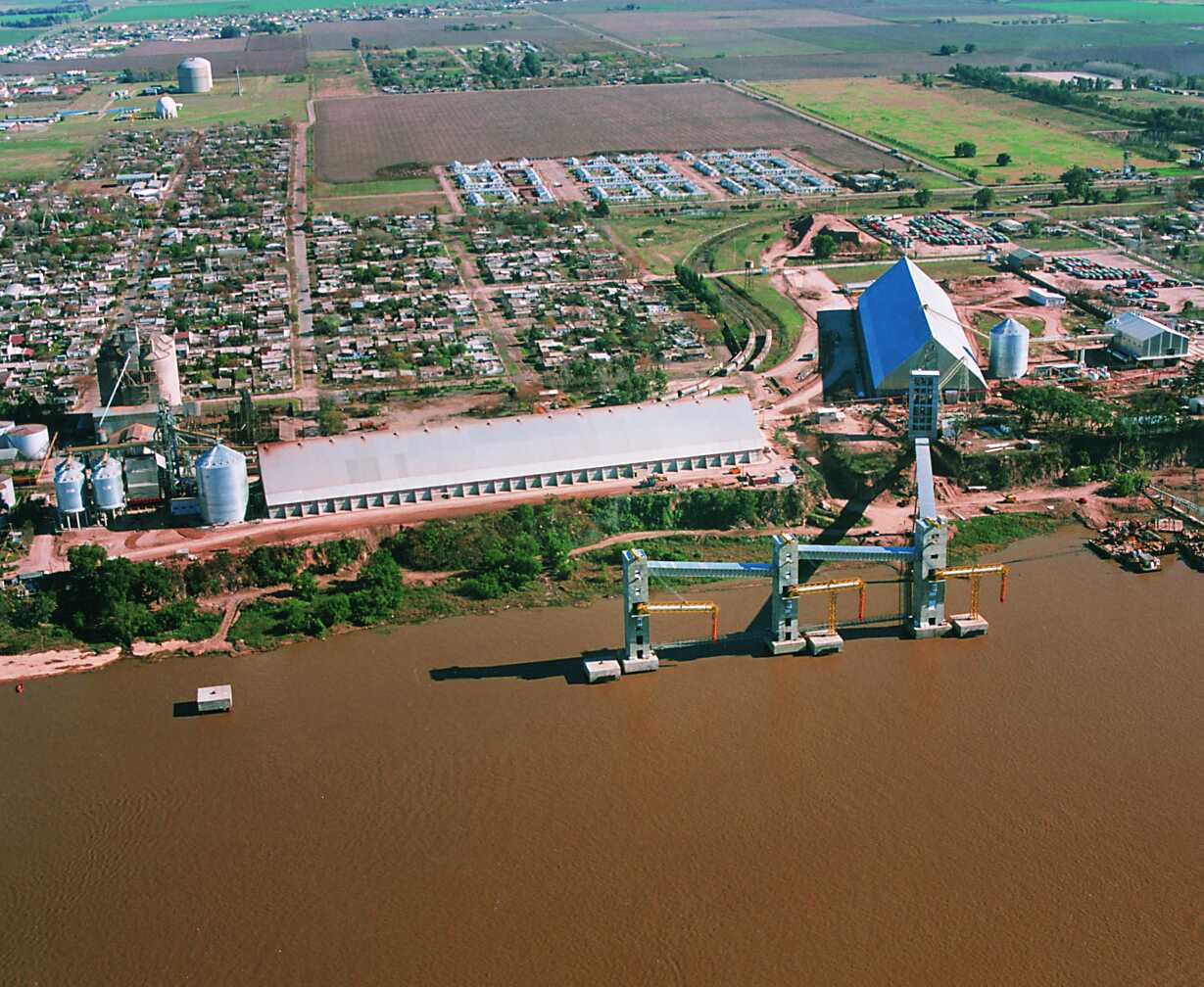 Is owned and operated by Messrs. Vicentin. The have storage capacity for grains/byprods and vegoils. The inner side of this elevator has facilities to discharge barges. A whole barge convoy can be accomodated between the coast and the dolphins. The terminal is laso fitted with hopper and belt conveyor systems designed for the discharge of fertilizers and sulphur.